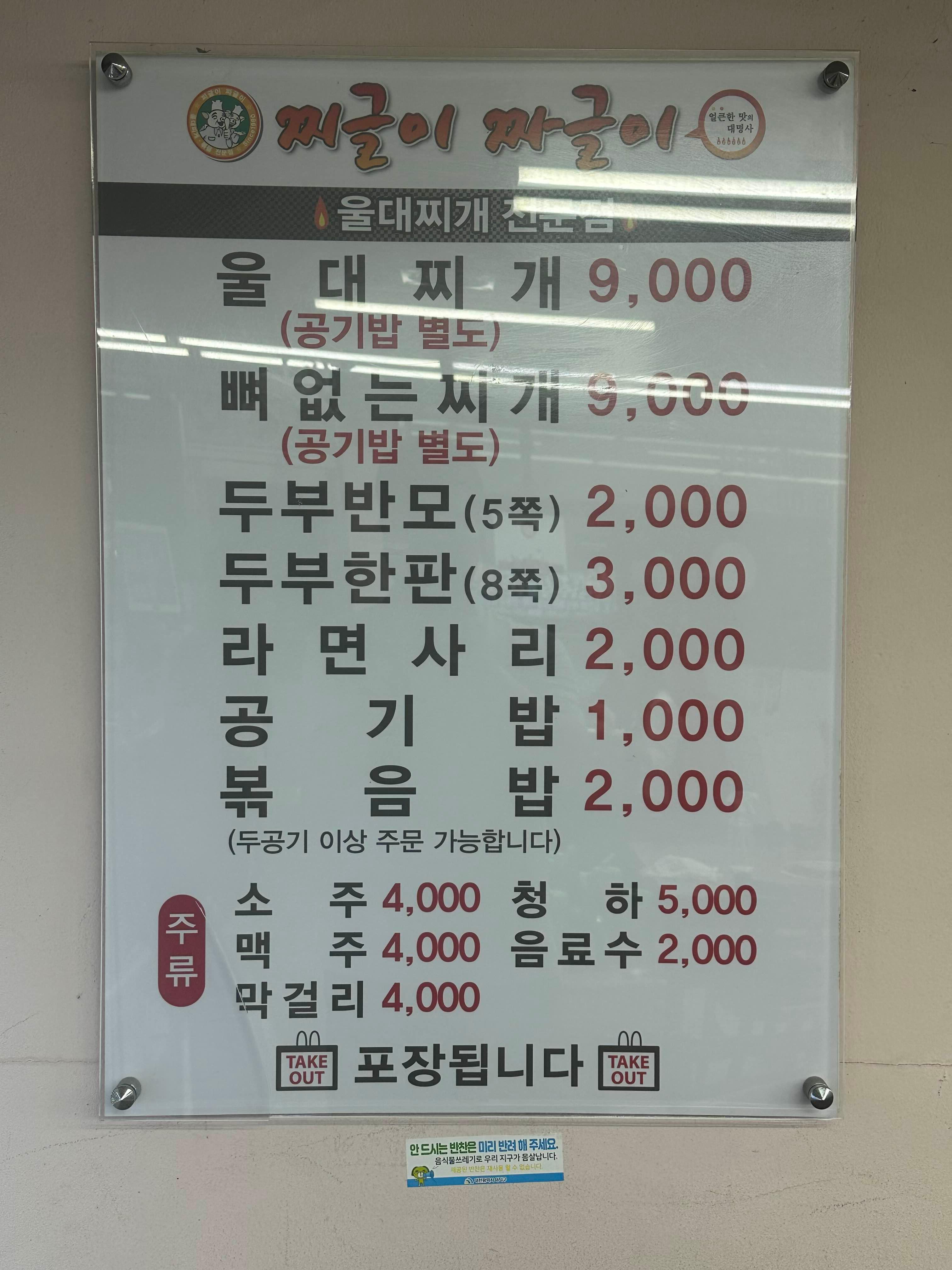 메뉴입니다 예전에는 울대찌개만 있었는데 뼈 없는 찌개가 좋을 것 같네요 뼈 발라먹기 귀찮아서요 ㅋ