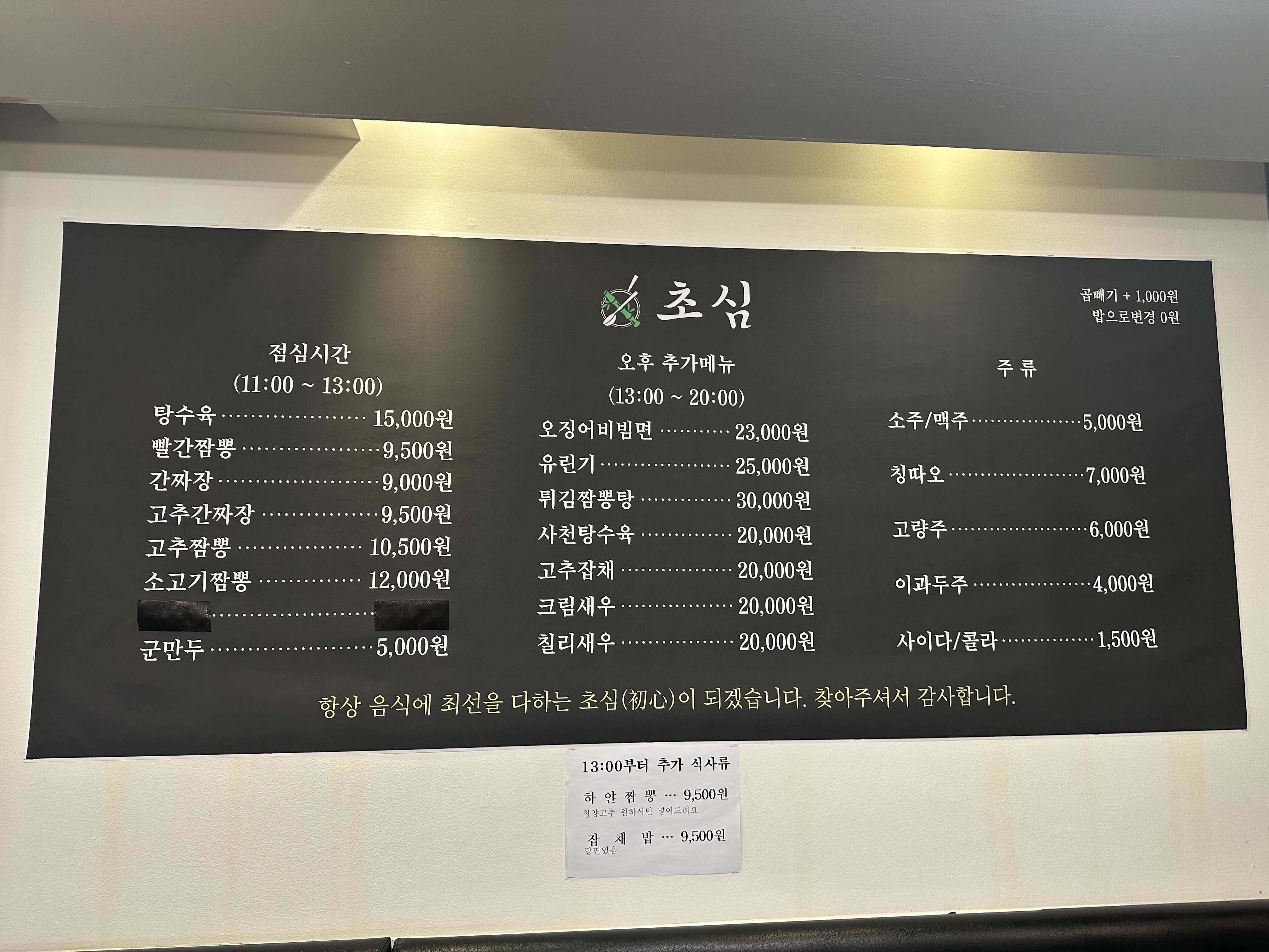 메뉴는 짬뽕 세 가지 짜장면, 탕수육 등 많이 있네요 짬뽕이 9,500원 하네요(싼 편은 아니네요)