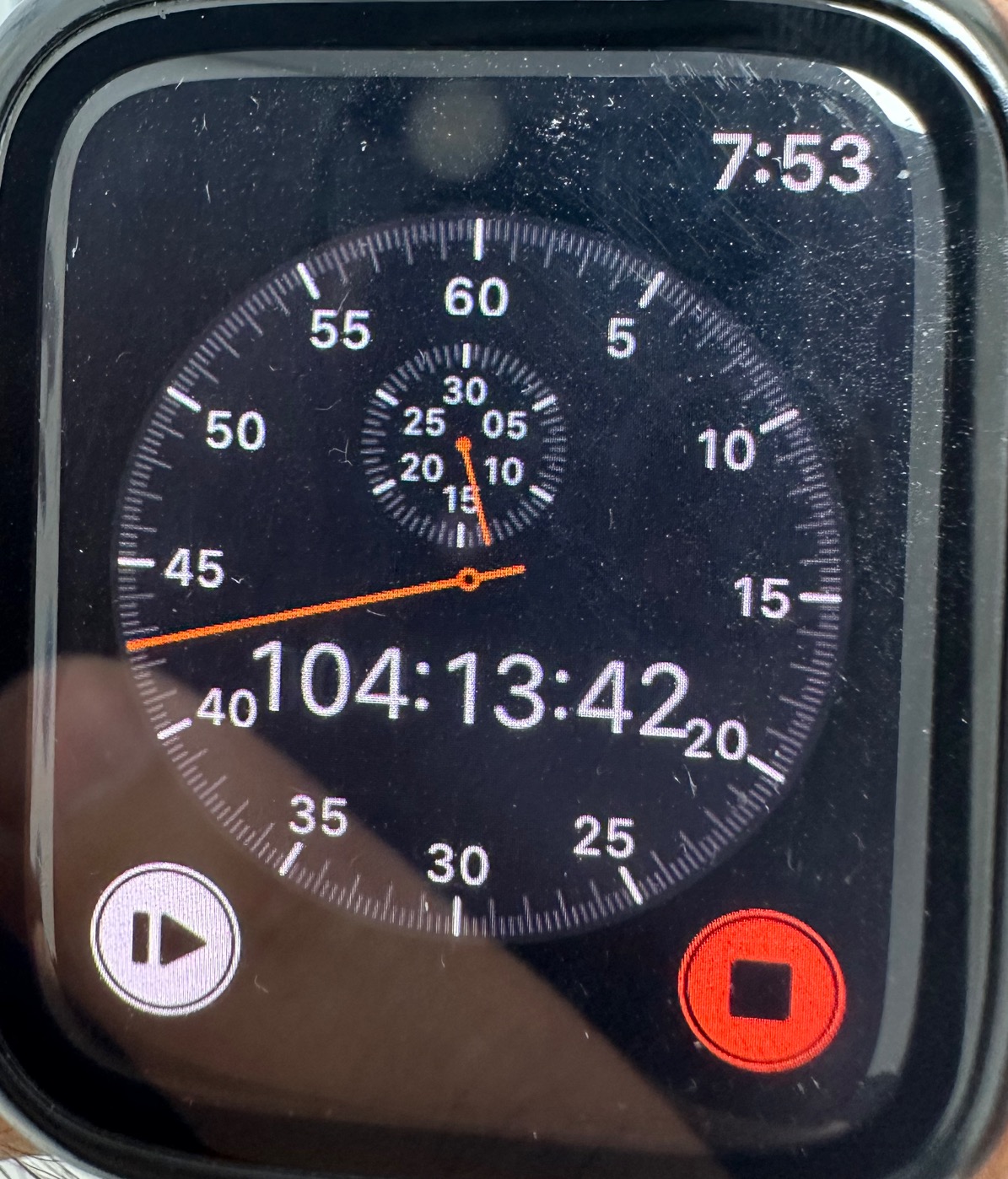 드디어 100시간이 지났습니다 실제로 마지막 식사 후 2시간이 지나서 타임워치를 누른 걸 감안하면 106시간입니다