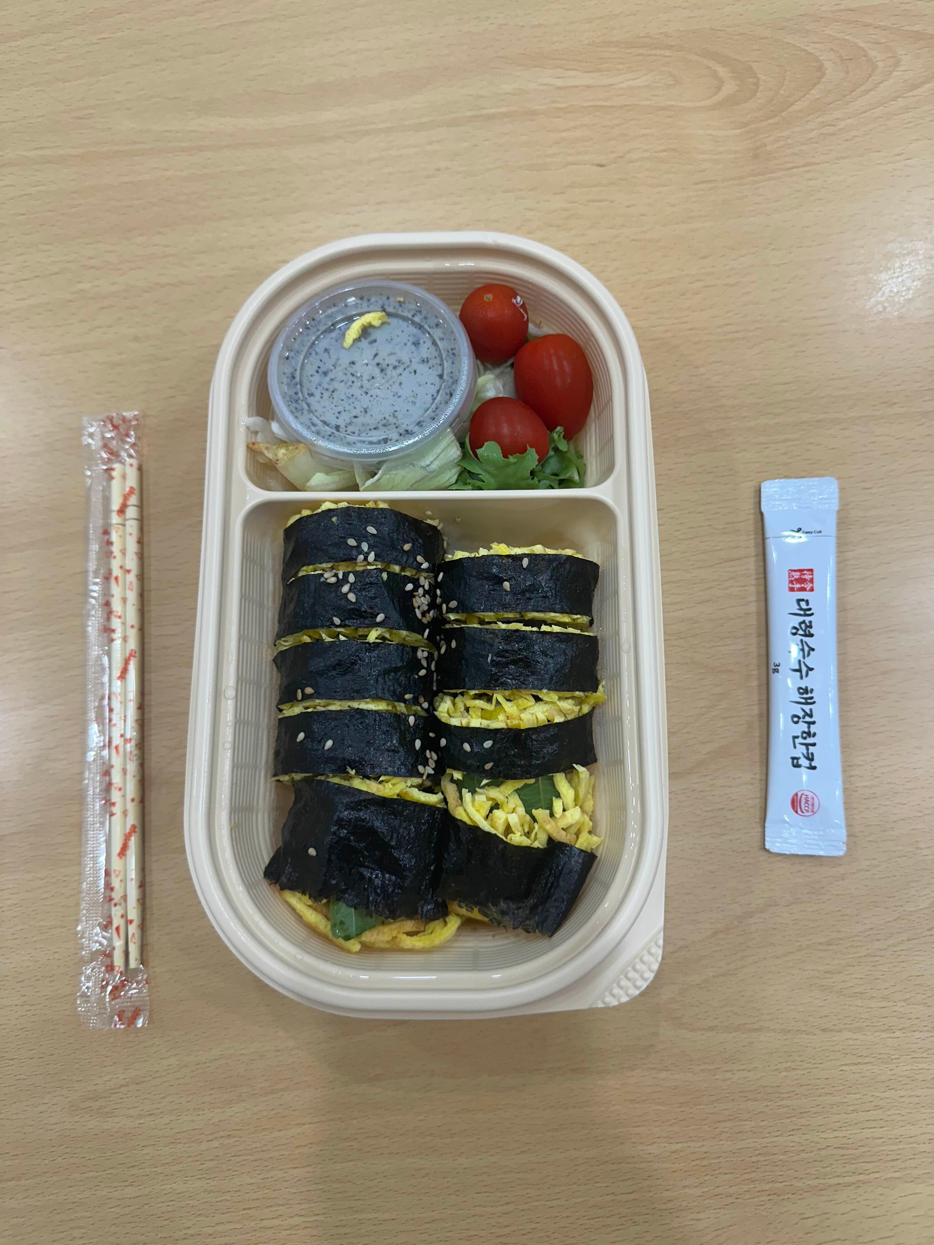 드디어 오늘 아침을 먹었습니다 ㅎㅎ 감격 그 자체~ 동료직원이 준 키토김밥입니다 그리고 대령숙수라고 국물입니다
