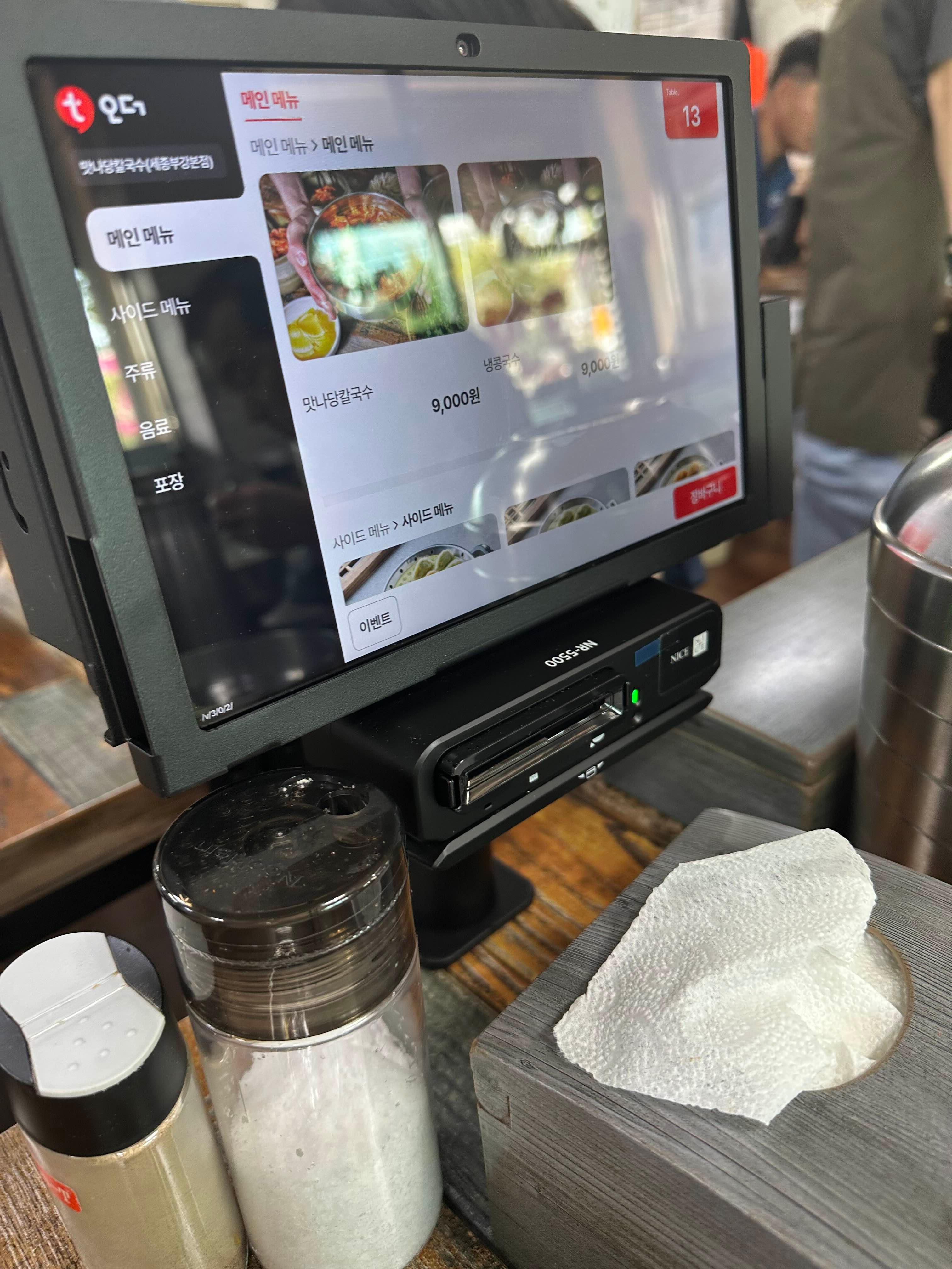 테이블마다 키오스크가 있으니 주문하고 카드결제하면 주문이 접수됩니다