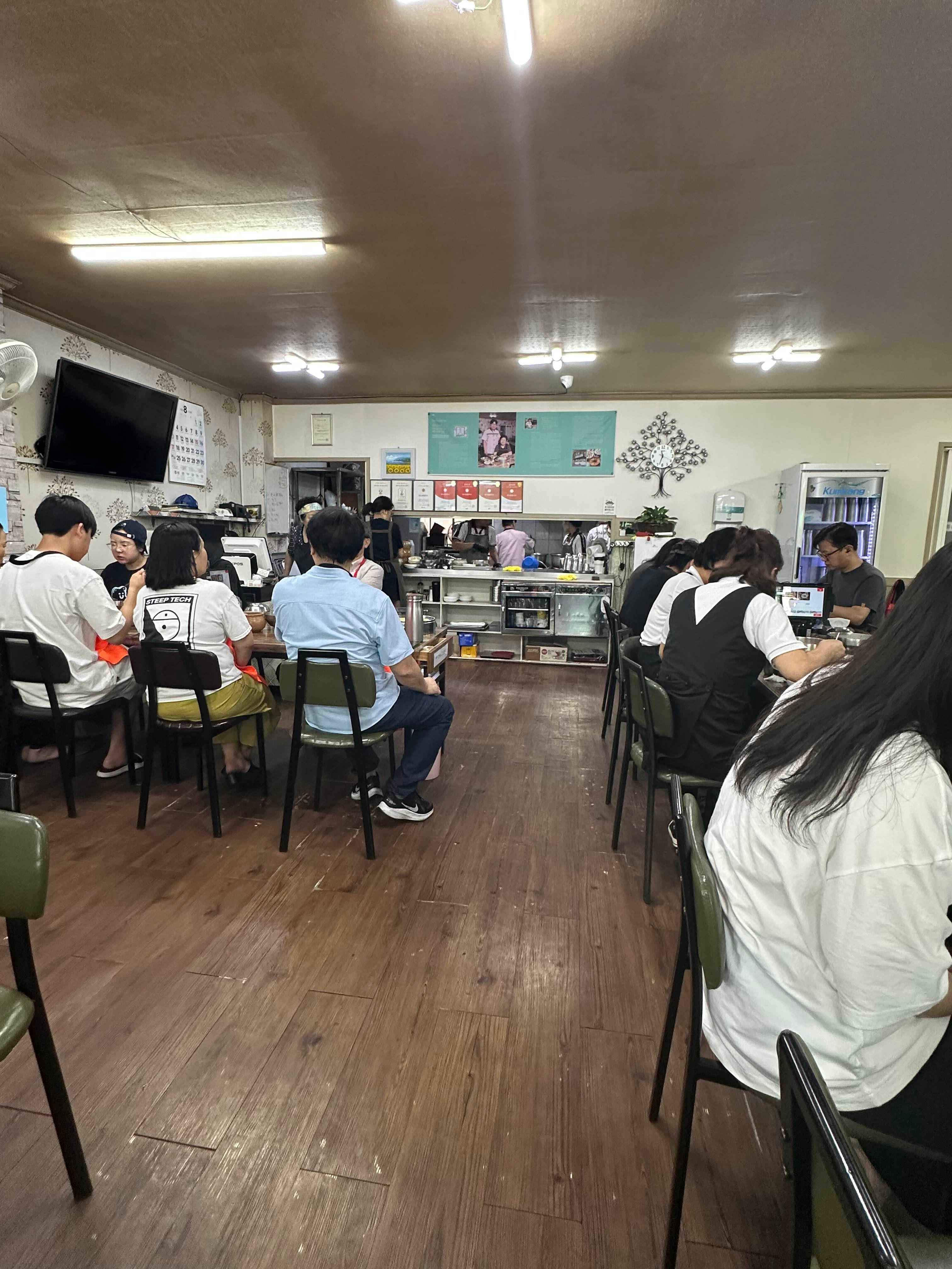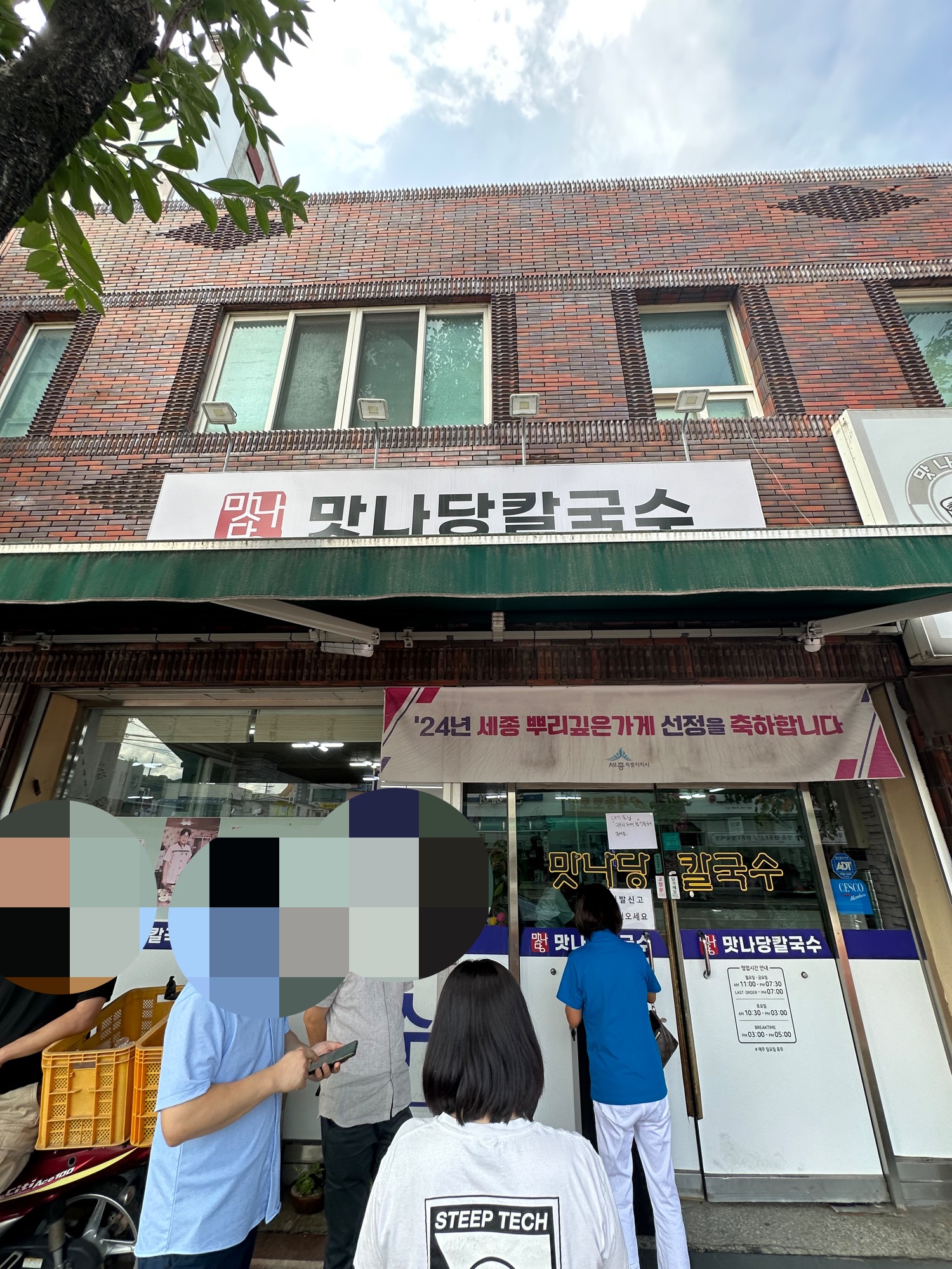 이렇게 가게 주변 둘러보니 어느새 제 차례가 다가오더라고요 드디어 입장 ㅋ 식당 전경입니다 테이블은 한 10개 정도 있었고 냉방상태는 양호했습니다 뜨거운 칼국수인데 더우면 안 되져 ㅎㅎ