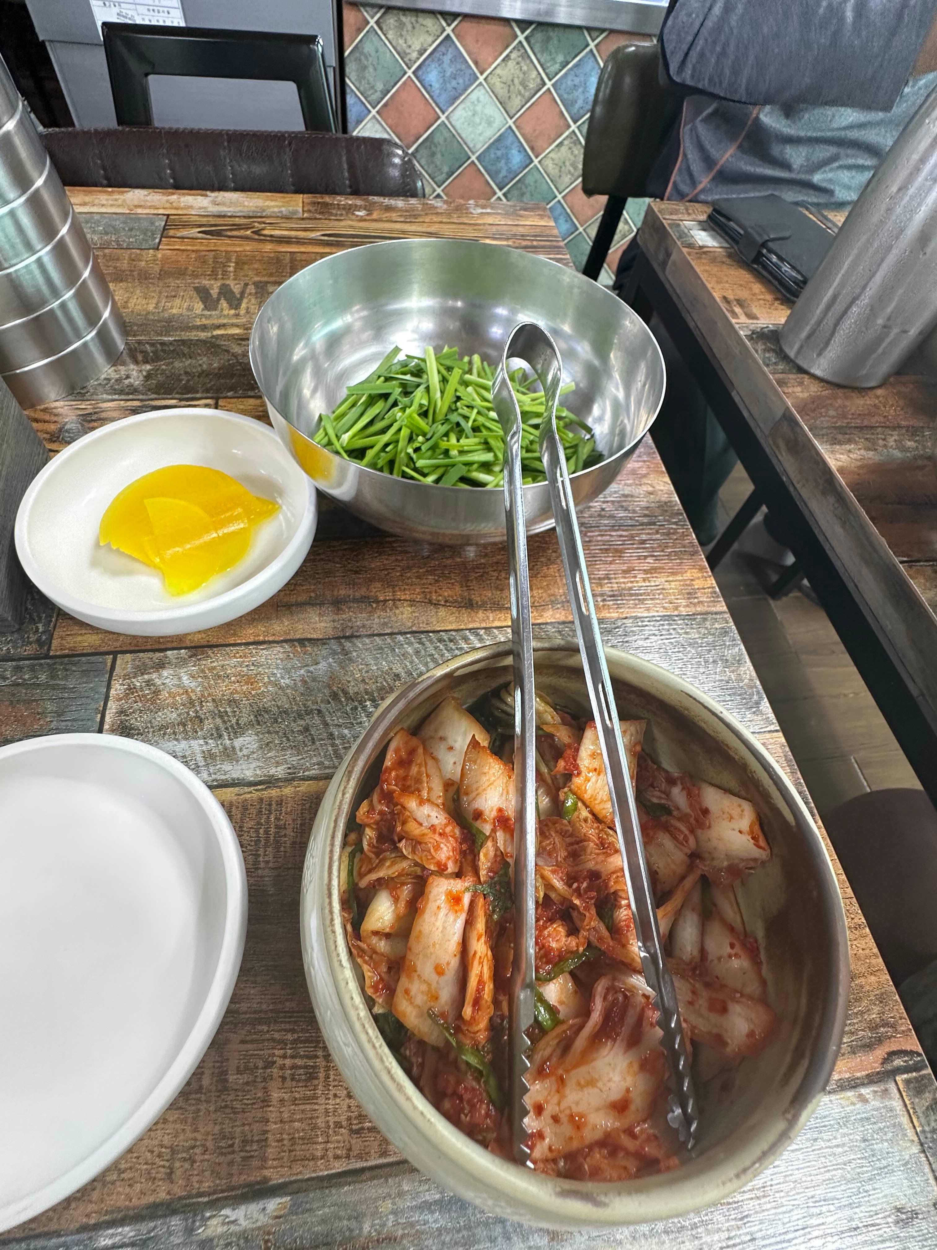 기본 반찬은 김치와 단무지입니다 김치는 겉절이인데 보기만 해도 맛있어 보입니다 ㅎ