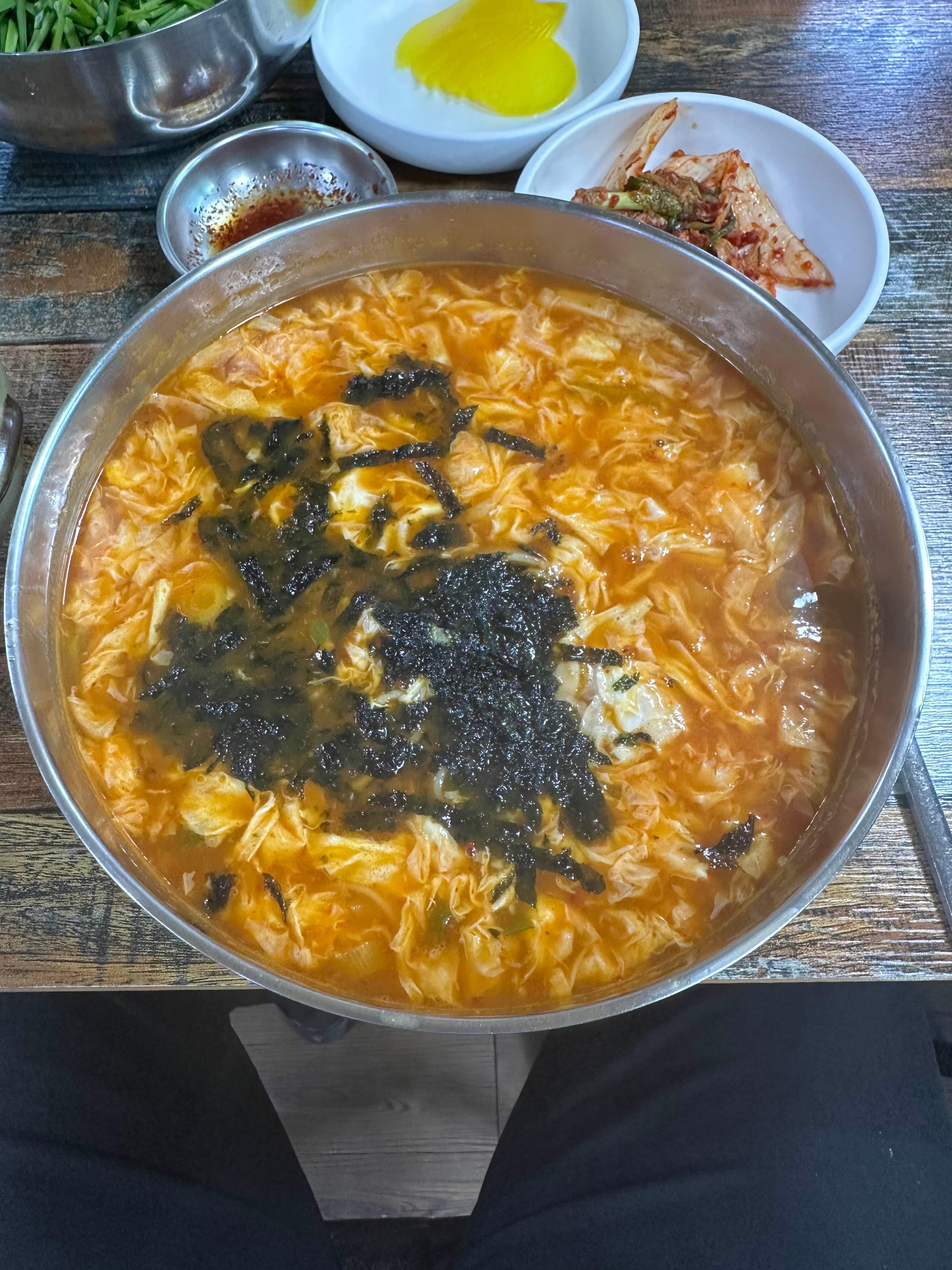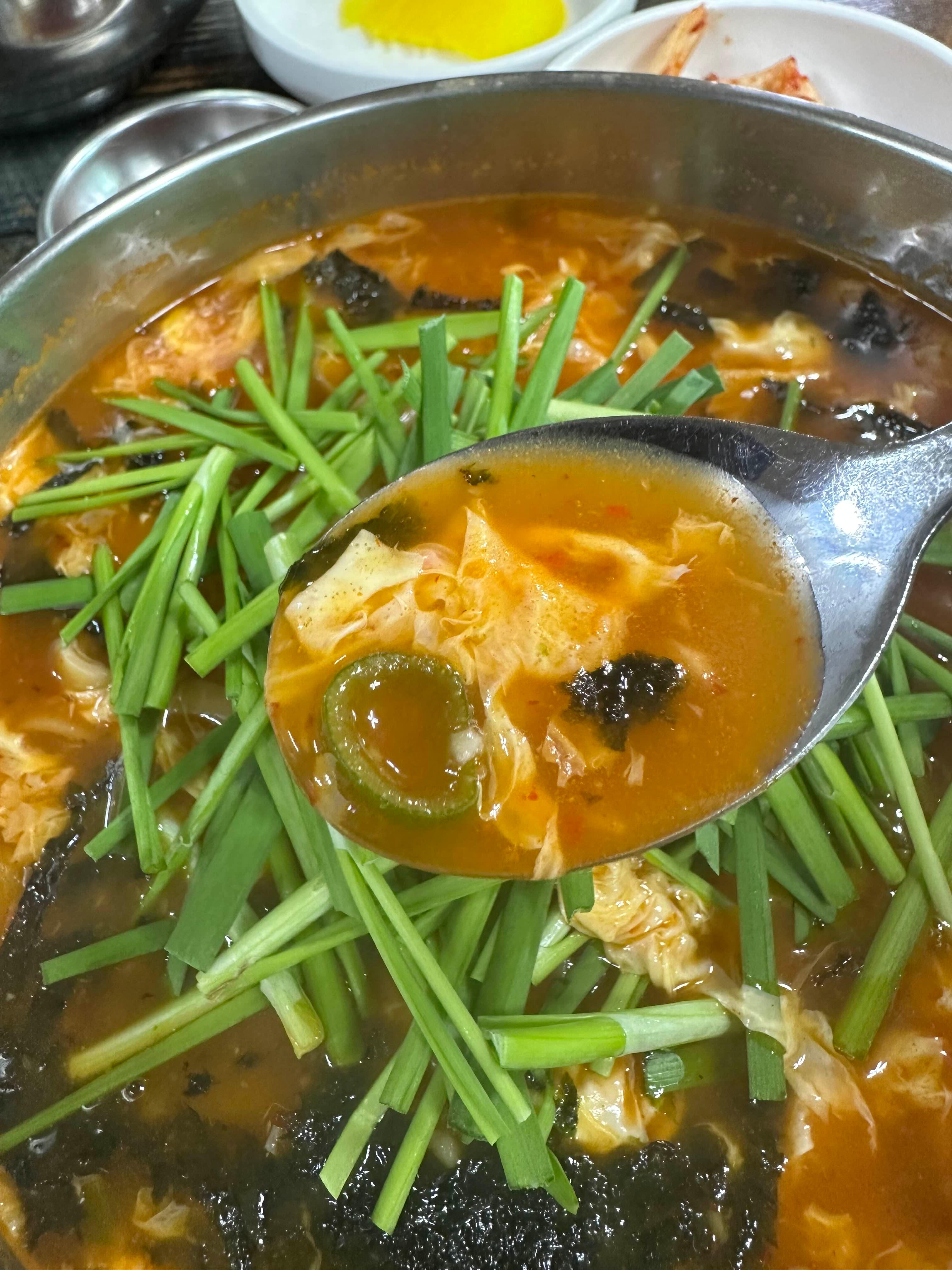 자 드디어 매인 메뉴인 맛나당 칼국수가 나왔습니다. 딱 봐도 우리가 상상하는 그 맛입니다 얼큰하고 시원한 그 맛