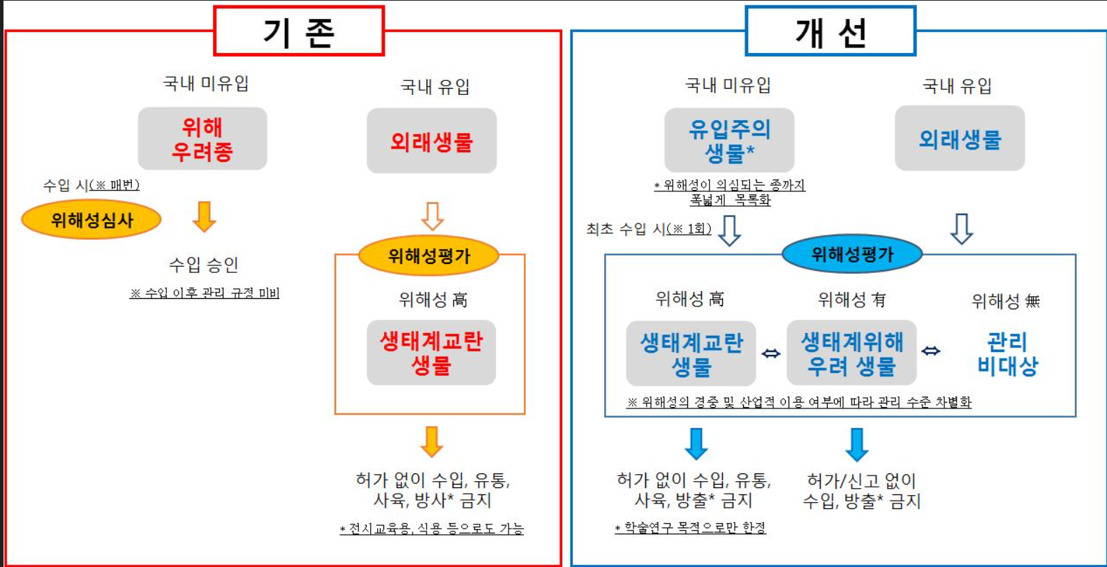 2) “위해우려종의 생태계위해성심사” : 위해우려종이 국내에 유입되는 경우 국내 생태계 등에 미치는 영향과 관리방안 등을 체계적으로 검토하여 심사하는 것