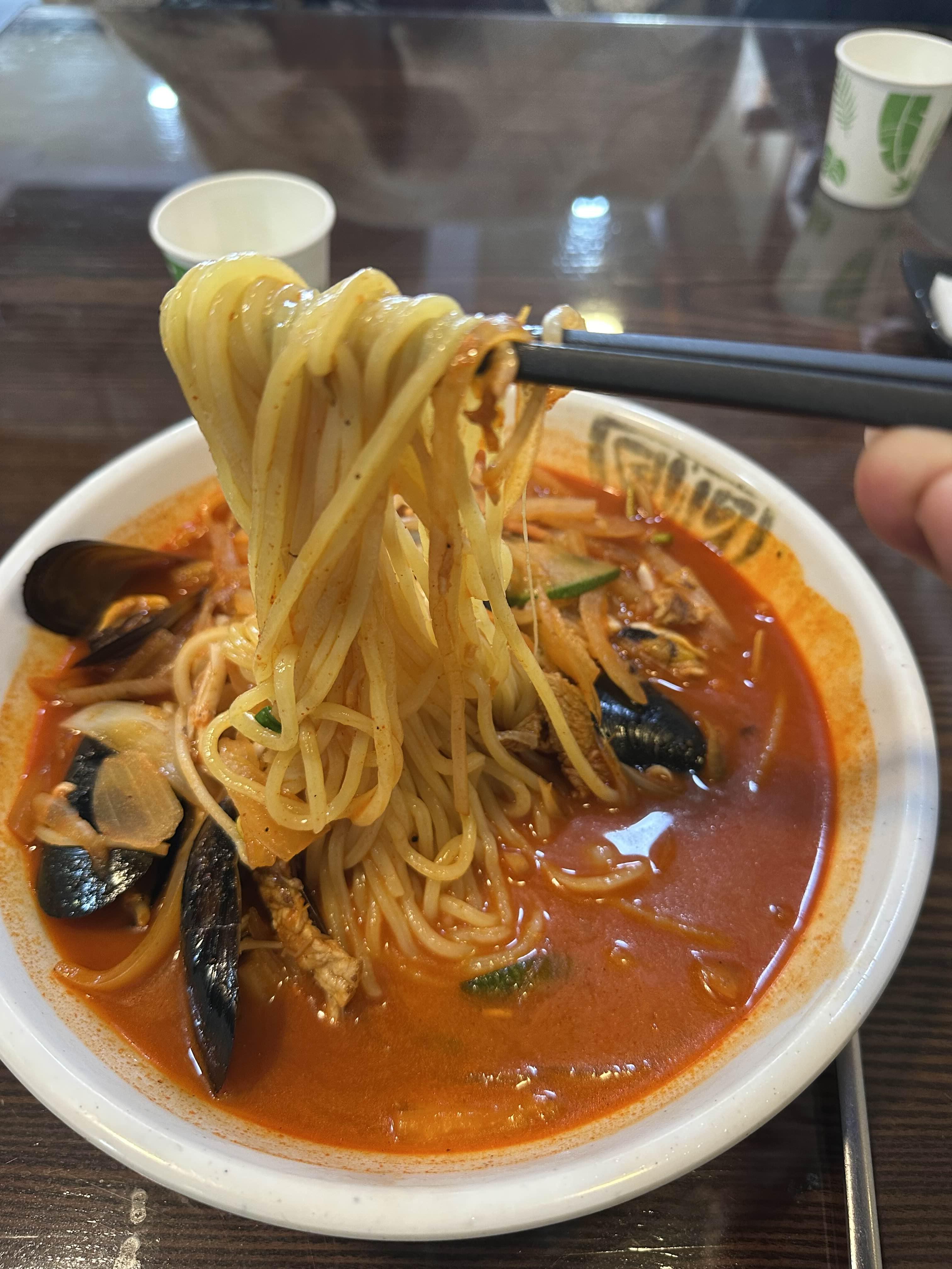 국물이 오늘은 약간 묽은? 느낌이었는데 괜찮았습니다 원래는 더 찐하거든요 오징어 새우 해산물 야채 돼지고기 등이 푸짐하게 들어있습니다