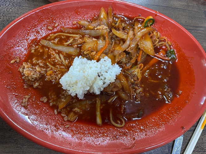 생각보다 매콤 합니다 그리고 국물이 살짝 있는 느낌입니다 면의 양과 해물량 많습니다
