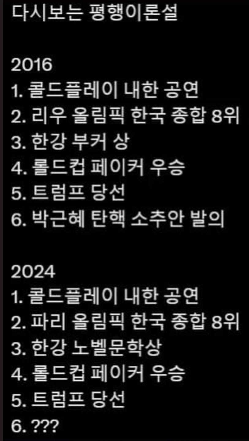 2016년과 2024년의 평행이론설 ㅎㄷㄷ 이네요